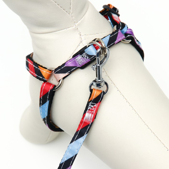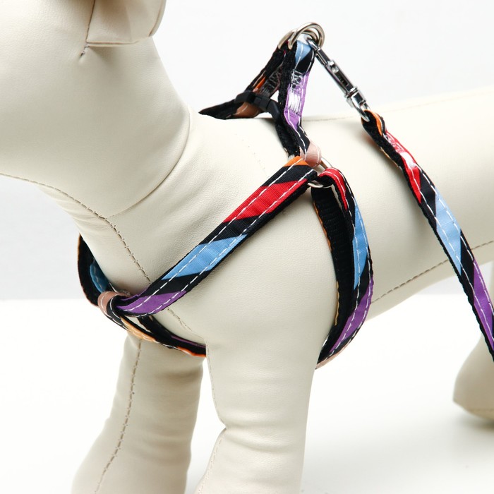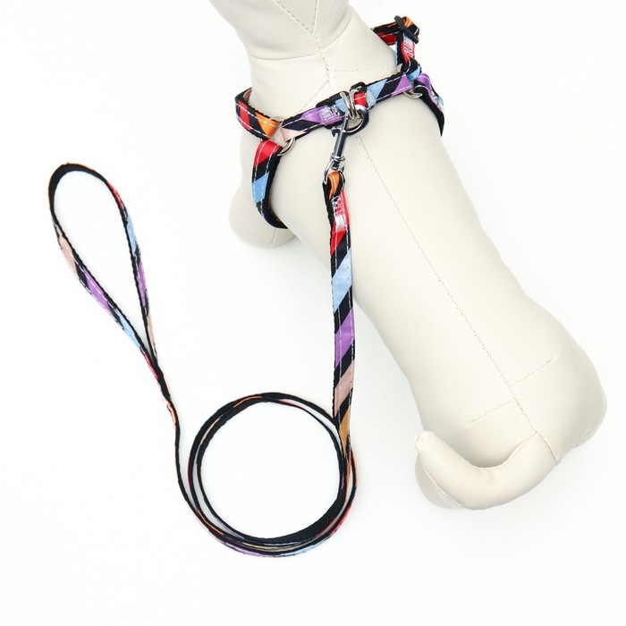 Комплект амуниции двухслойный, S, поводок 120×1 см, ОШ 24-38 ОГ 29-41 см, разноцветные полосы