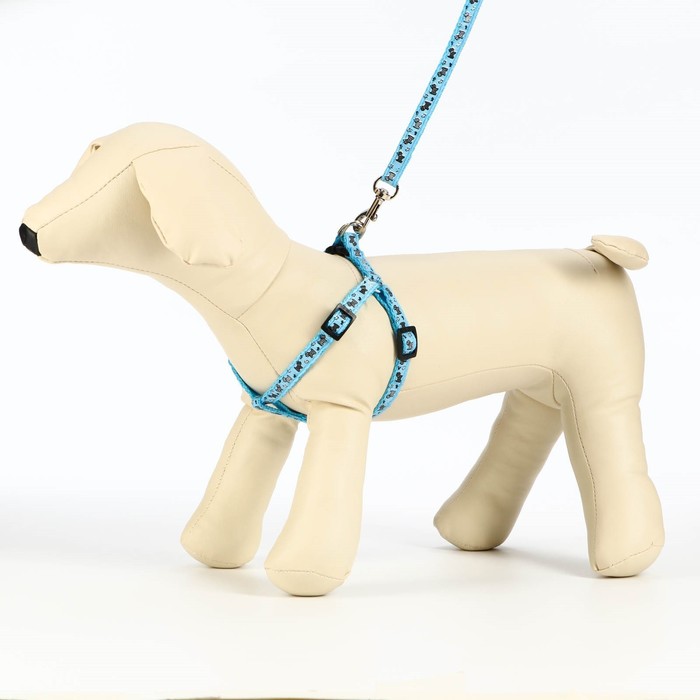 Комплект «Собачки», ширина 1 см, поводок 1.2 м, шлейка 23-35 см, голубой