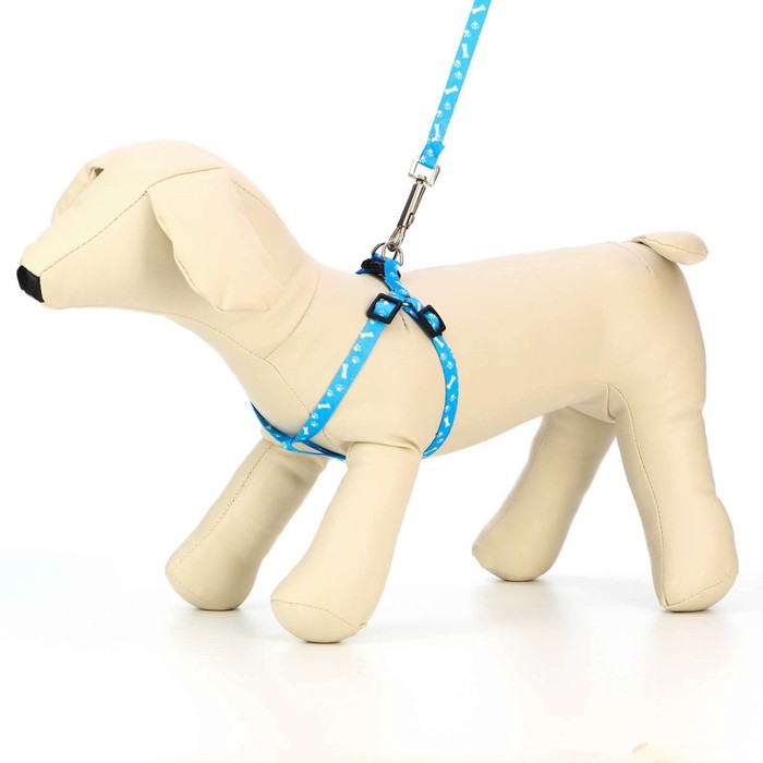 Шлейка с поводком «Классика», ОГ 21-35 см, поводок 120×1 см, капрон, голубая