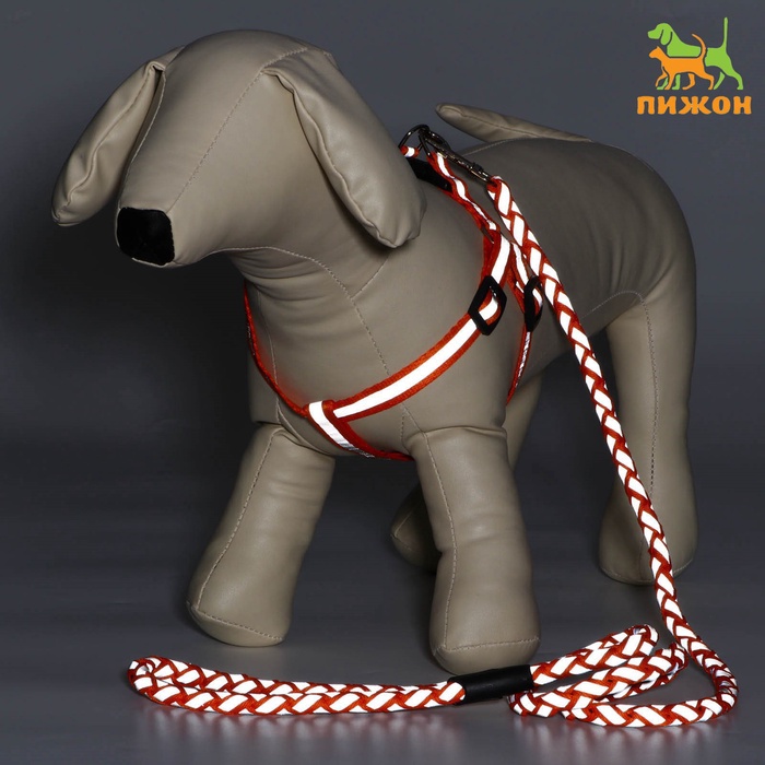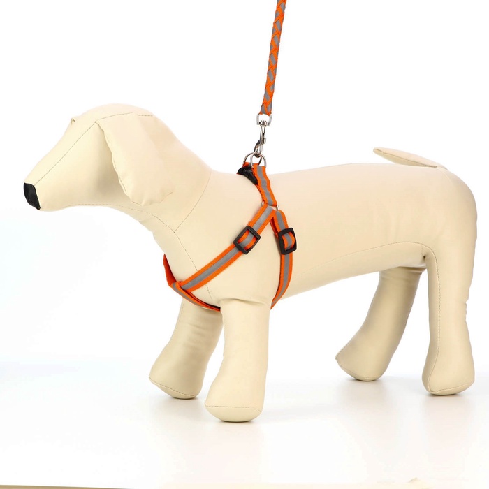 Шлейка с поводком «Плетенка», ОГ 32-48×1.5 см, поводок 115×1 см, флуоресцентная, оранжевая