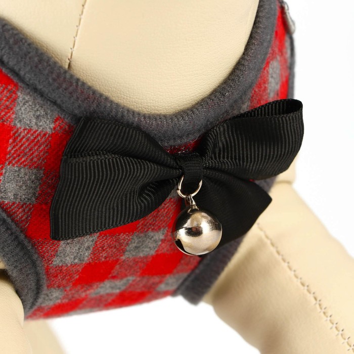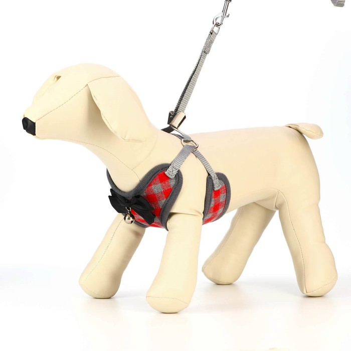 Шлейка с поводком, размер L, ОШ 30-50 см, ОГ 36-56 см, поводок 120×1.5 см, мягкая, серая, красная