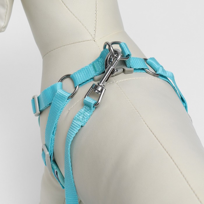 Шлейка с поводком, размер S, ОШ 39-41 ОГ 44-48 с, поводок 140 см, быстросъёмная, мягкая, бирюзовая