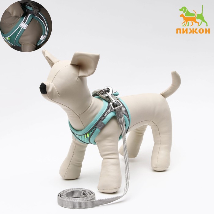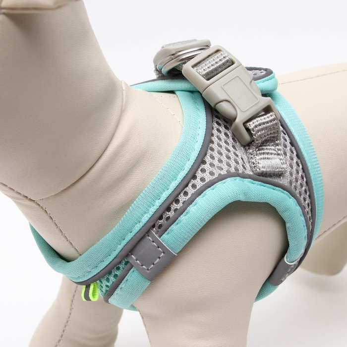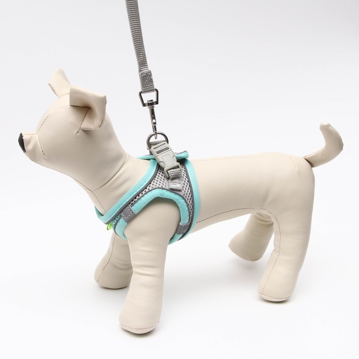 Шлейка с поводком, размер XXS, ОШ 24-26 ОГ 28-30 см, поводок 150×1.5 см, быстросъёмная, мягкая, бирюзовая