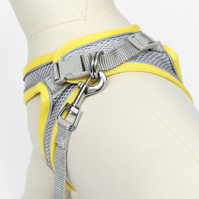 Шлейка с поводком, размер XXS, ОШ 24-26 ОГ 28-30 см, поводок 150×1.5 см, быстросъёмная, мягкая, жёлтая