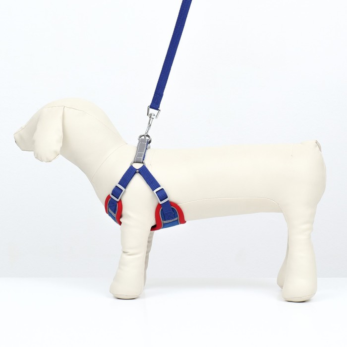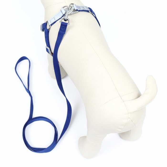 Шлейка с поводком Sport+, размер S, ОШ 39-41 см, ОГ 44-48 см, поводок 150×1.5 см, вес животного 7-13 кг, синяя