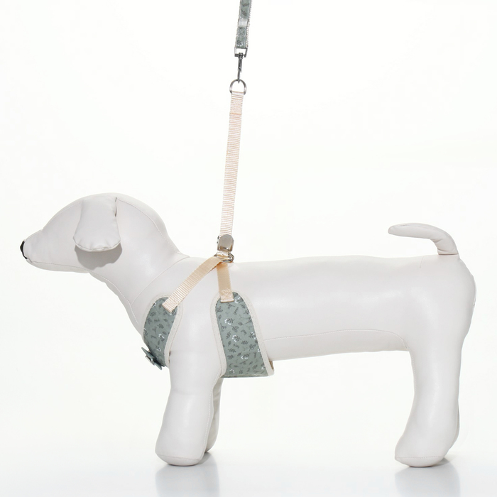 Шлейка с поводком «Веточки», размер L, ОГ 42-76 с, поводок 120×1.5 см, мягкая, серая