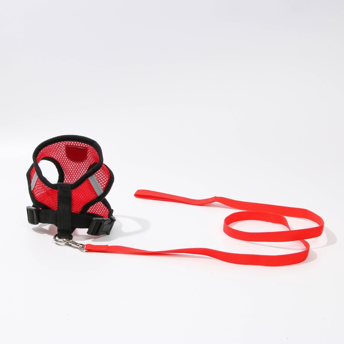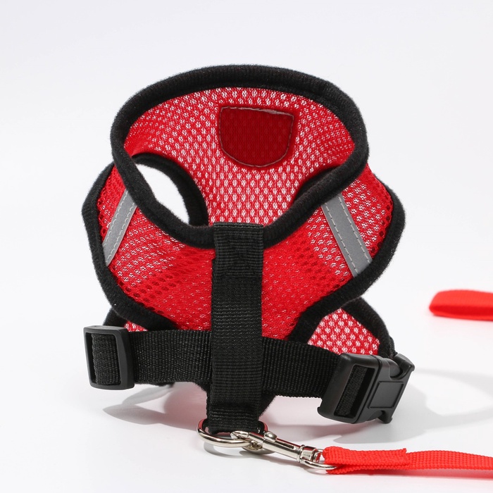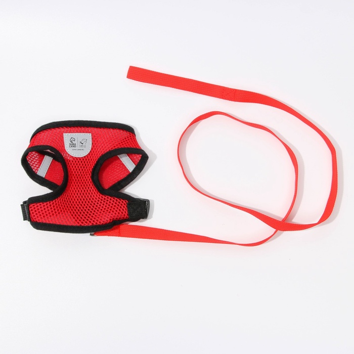 Шлейка дышащая с поводком и светоотражающей нашивкой, M, ОШ 33, ОГ 32-43, красная