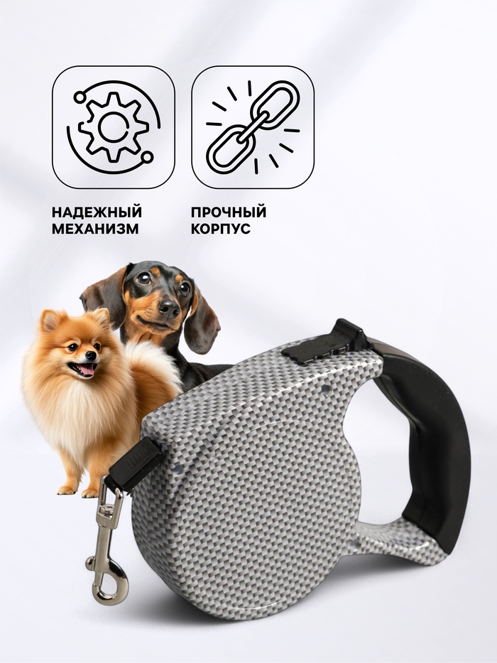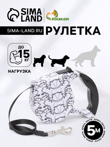 Рулетка с поводком-лентой, резиновая ручка, 5 м, вес животного до 15 кг
