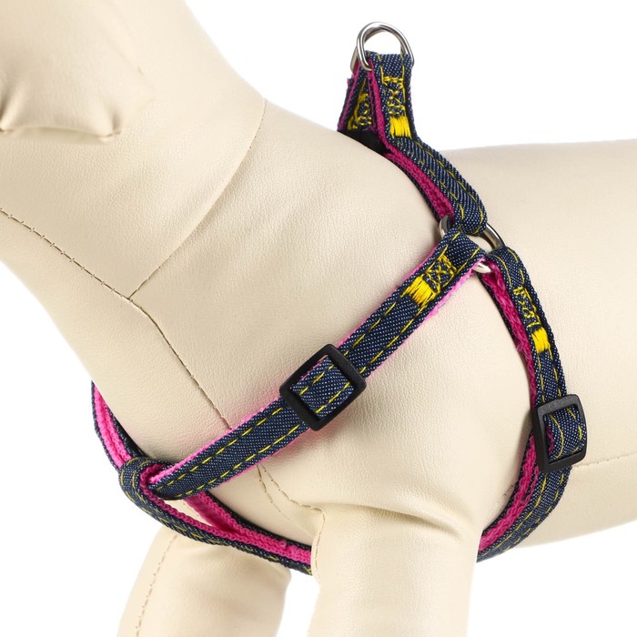 Шлейка "Джинс", розовый подклад, ширина 1 см, ОШ 25-40 см, ОГ 25-40 см