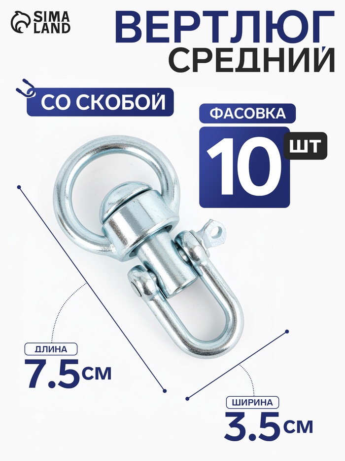 Вертлюг со скобой, средний (длина-7.5 см, ширина-3.5 см), 10 шт.