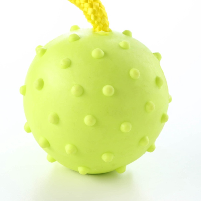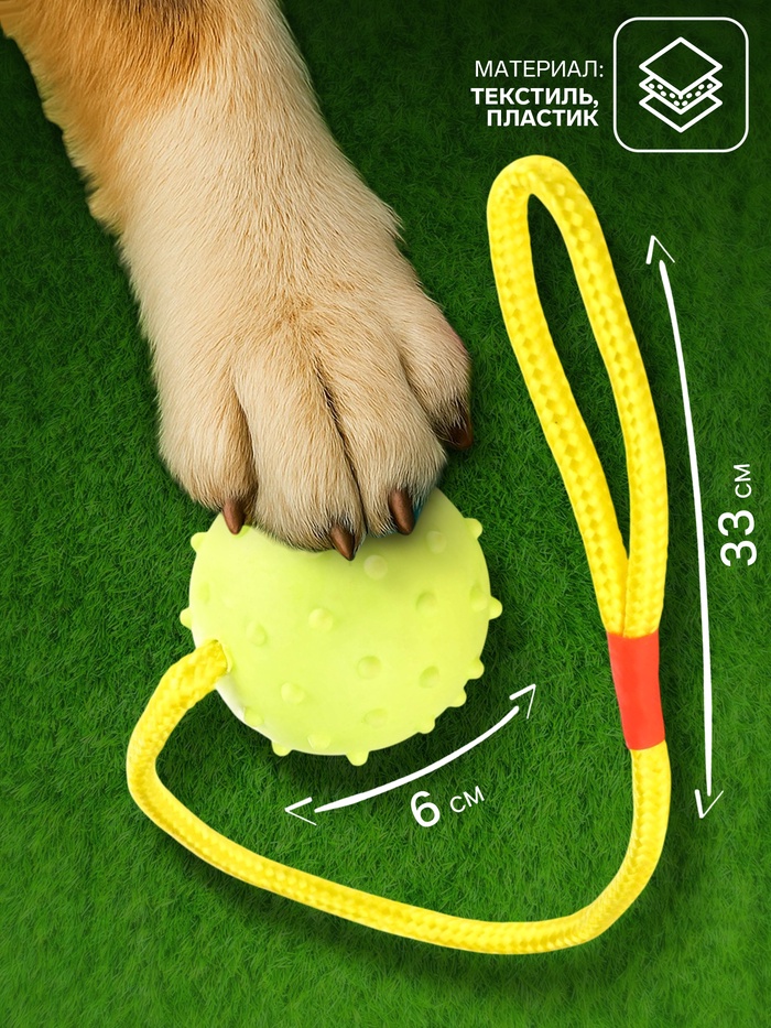 Игрушка для собак, мяч на веревке, 6 см, салатовая, жёлтая