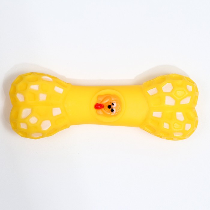 Игрушка пищащая «Кость с портретом» для собак, 15 см, жёлтая