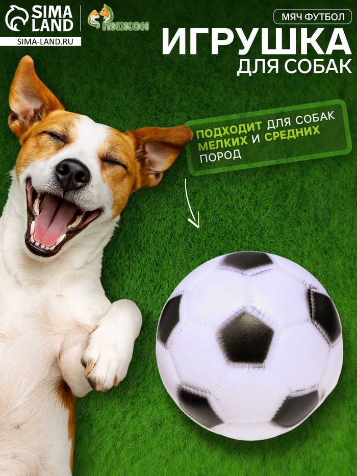 Игрушка для собак «Мяч Футбол», 6.2 см, пищащая, винил, белая