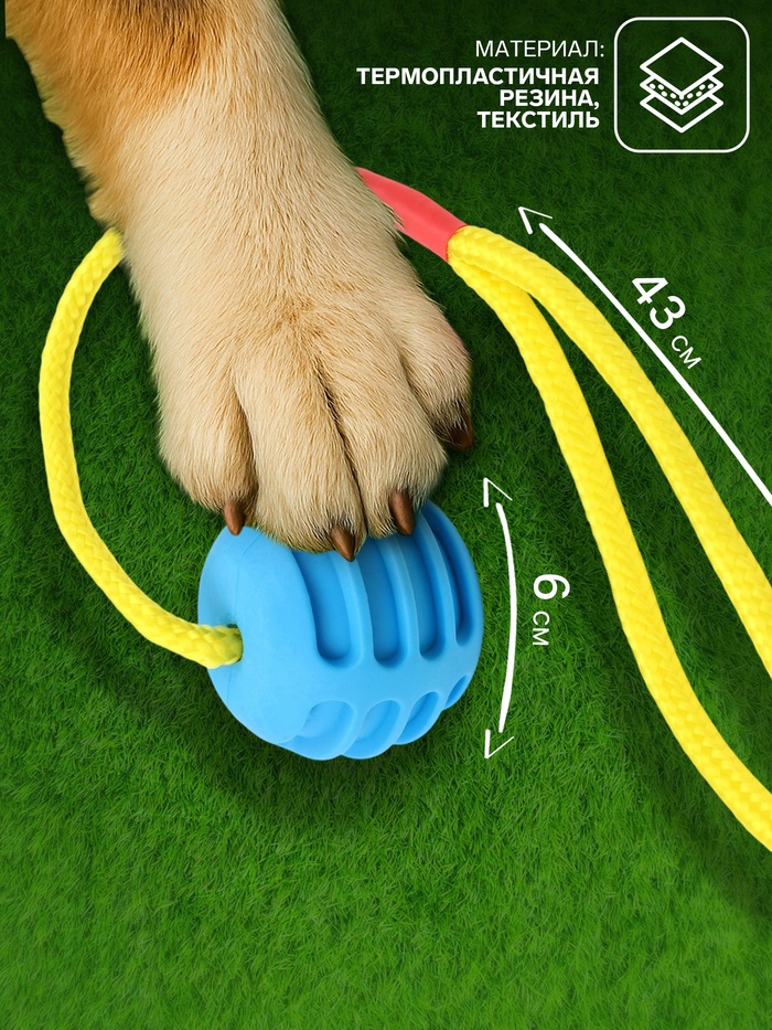 Игрушка «Шар усиленный на веревке», 43 см, шар 6 см, голубой