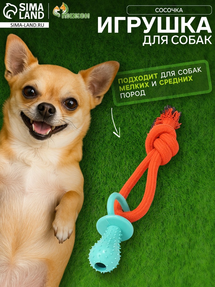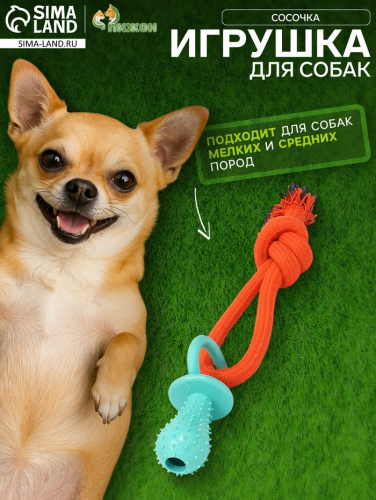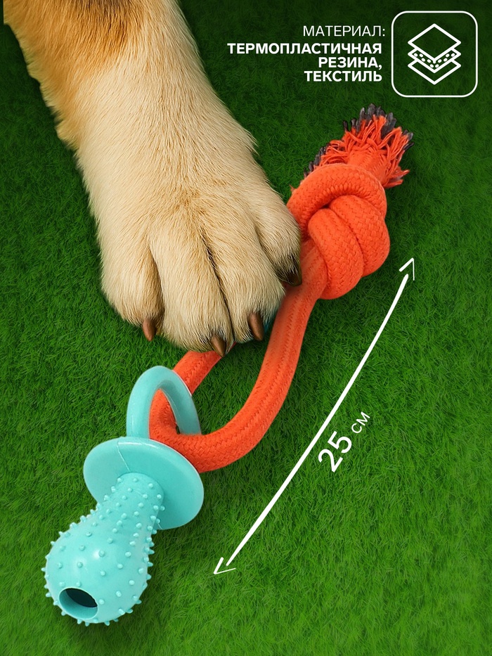 Игрушка жевательная с канатом «Сосочка», до 25 см, оранжевая, голубая