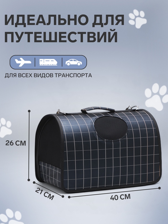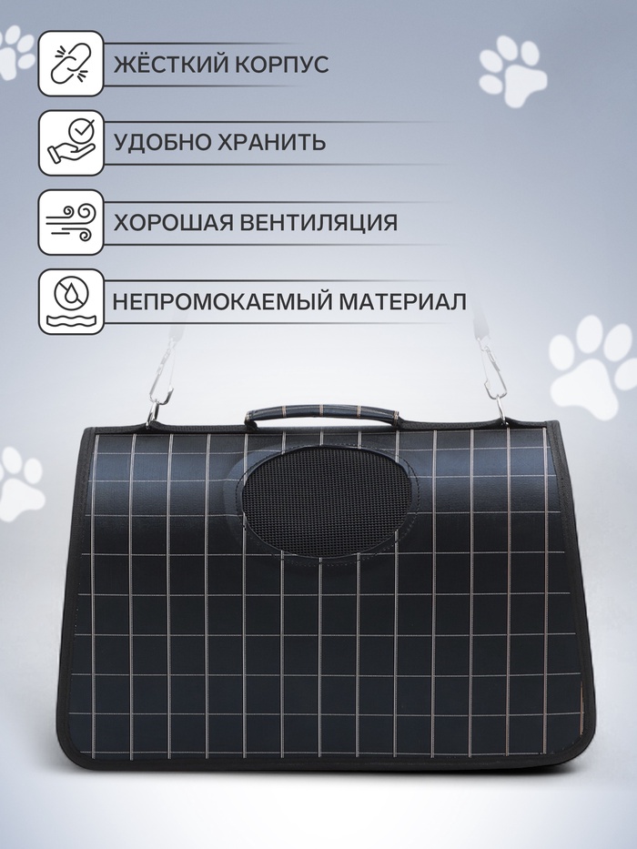 Сумка-переноска каркасная "Клетка", размер M, 43 х 21 х 26 см, чёрная