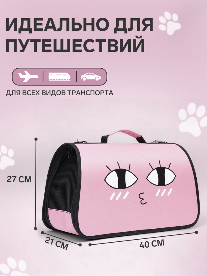 Сумка-переноска каркасная "Воздушный поцелуй", размер M, 45 х 21 х 27 см, розовая