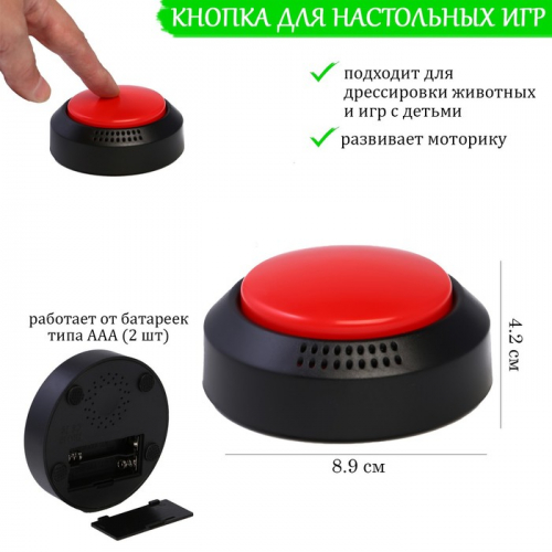 Кнопка для игр красная, 8.9×4.2 см, от батареек 2 ААА