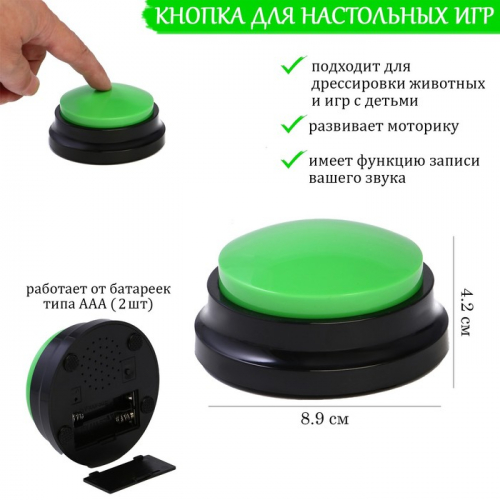 Кнопка для игр и дрессировки животных, с записью звука, зеленая