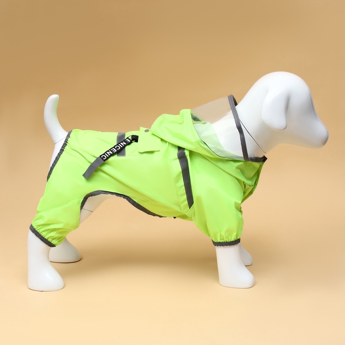 Комбинезон для собак, демисезонный, с козырьком, размер S, ДС 28, Ог 41, ОШ 31 см, зелёный