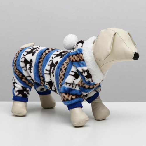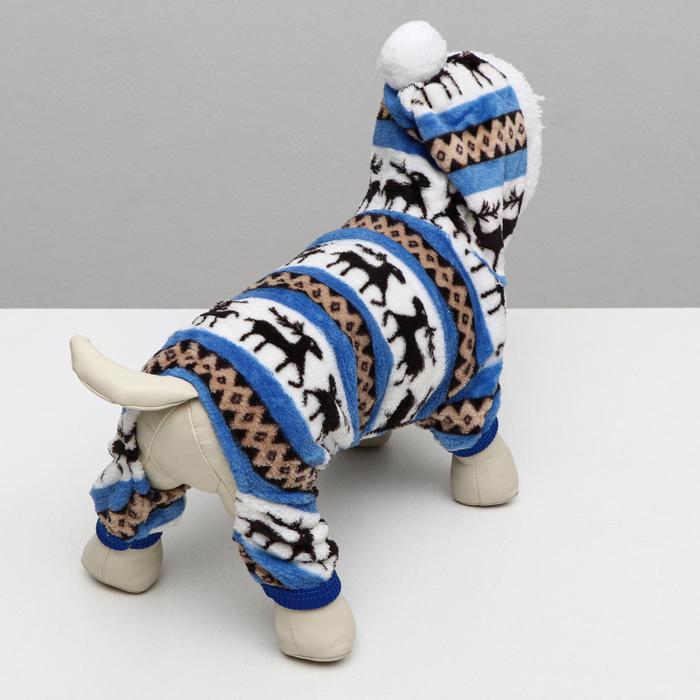 Комбинезон «Олени» с капюшоном, размер M (ДС 30 см, ОГ 40 см, ОШ 30 см), голубой