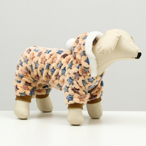 Комбинезон «Звёзды» с капюшоном, размер L (ДС 35 см, ОГ 45 см, ОШ 35 см), бежевый