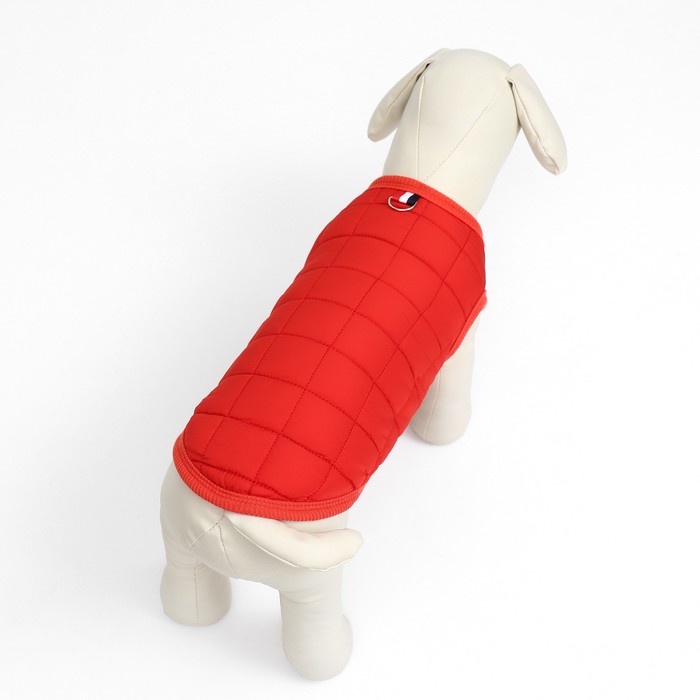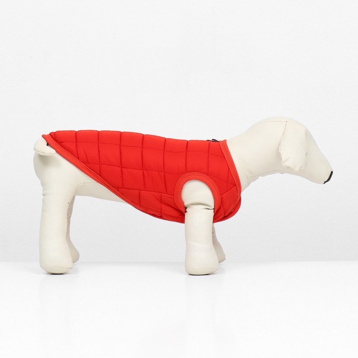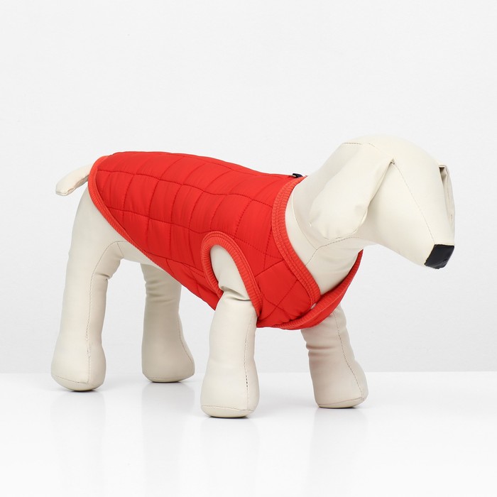 Тёплая, стёганая куртка подойдёт вашему питомцу в холодную погоду!Куртка с открытым животом пойдет, как для мальчиков, так и для девочек. Не сковывает движений, надежно защищает от грязи, дождя и ветра.Представлена в ярко красной расцветке. Куртка застегивается кнопками на животе, что позволяет легко надевать и снимать. Внутри имеется тёплый подклад.На спине куртки имеется кольцо для поводка, что облегчит подготовку к прогулкам.Позаботьтесь о своем любимце - это куртка обеспечит вашего любимца комфортом и теплом в плохую погоду.