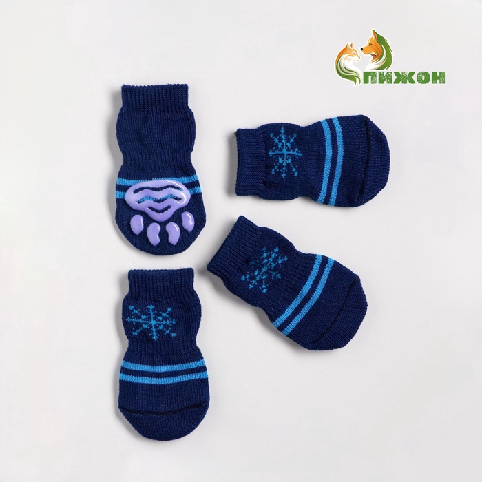 Носки нескользящие «Снежинка», размер М (3/4×7 см), набор 4 шт., тёмно-синие