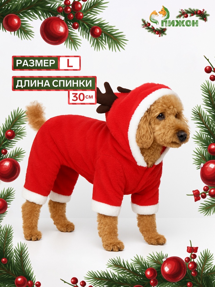 Новогодний костюм для животных «Олень», L (ДС 30, ОГ 42 см), красный