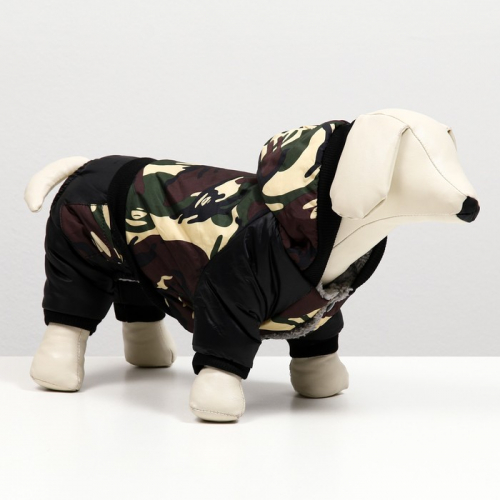 Комбинезон для собак, размер M, ДС 26, ОШ 32, ОГ 44 см, на меховом подкладе с капюшоном
