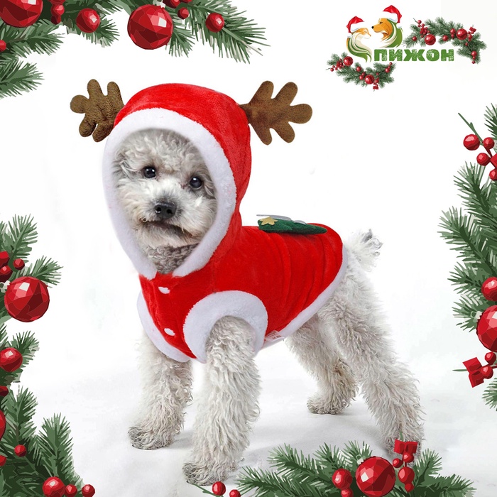 Новый год-это повод подобрать нарядную одежду не только для себя, но и для своей собаки. Новогодний костюм -отличный выбор для тех, кто хочет привнести в жизнь любимого питомца новогоднее настроение, а также порадовать себя и окружающих. Костюм вызовет восхищение и умиление прохожих во время прогулки .Идеальный аксессуар для новогодних фотографий!