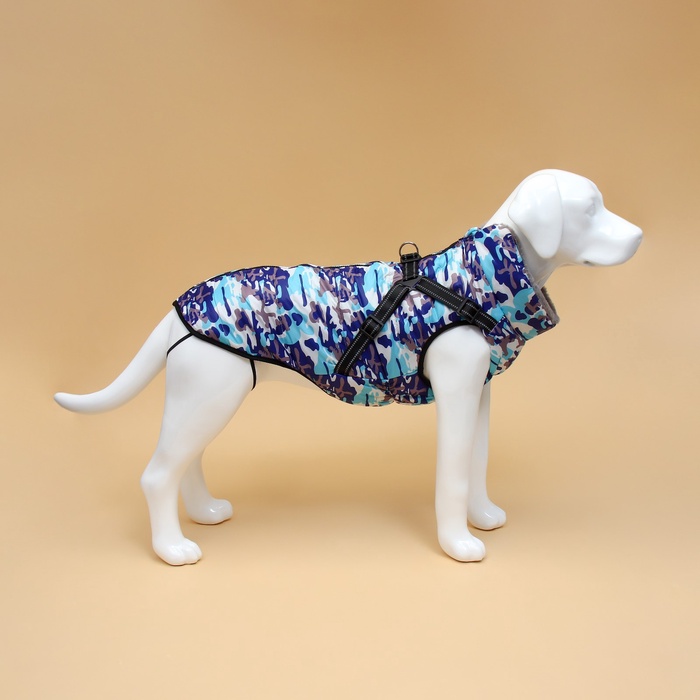 Куртка для собак со шлейкой, размер 4XL ( ДС 55 см, ОШ 52 см, ОГ 70 см), камуфляжная