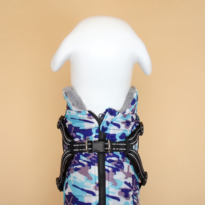 Куртка для собак со шлейкой, размер М (ДС 32 см, ОШ 28 см, ОГ 42 см), камуфляжная
