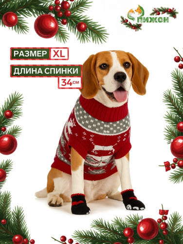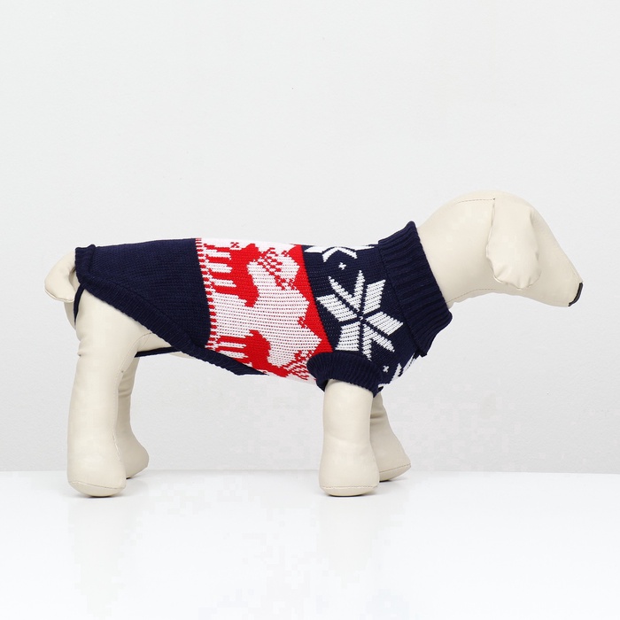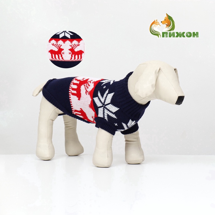 Свитер "Бегущие олени" для собак имеет уникальный новогодний дизайн, который придаст вашему питомцу особый вид во время праздников.