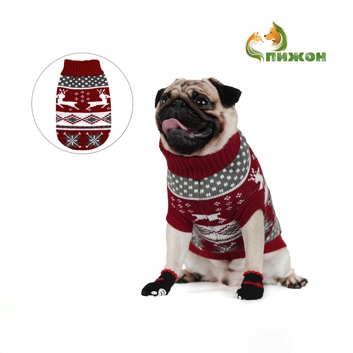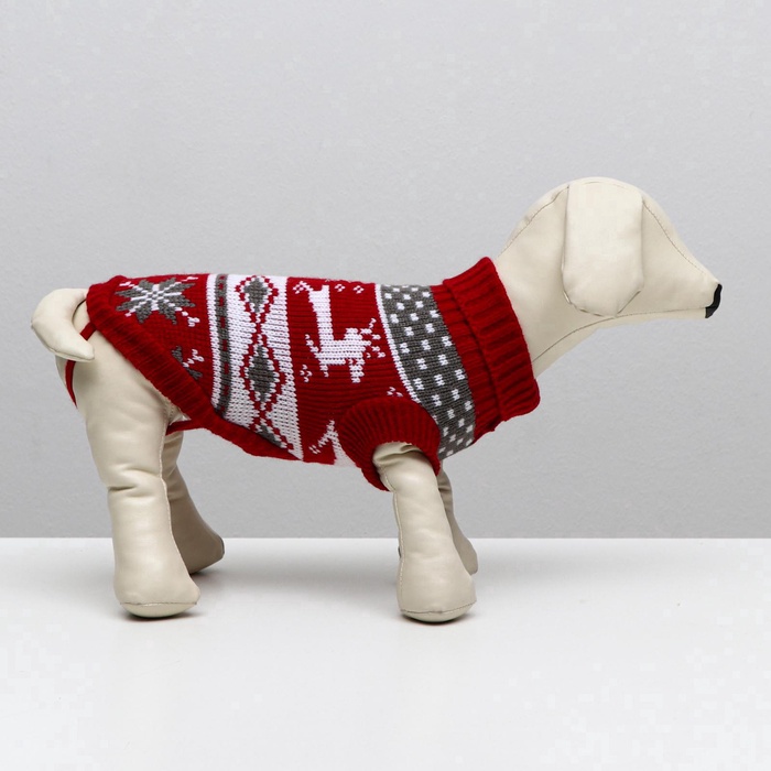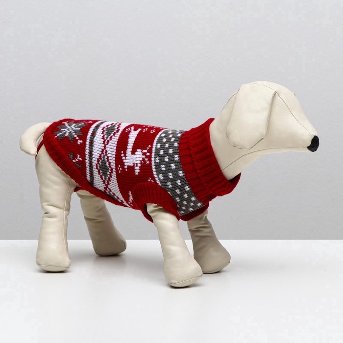 Свитер "Бегущие олени" для собак имеет уникальный новогодний дизайн, который придаст вашему питомцу особый вид во время праздников.