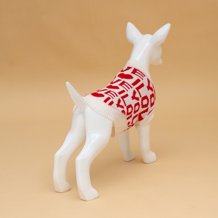 Свитер для животных ILOVEYOU, размер M, ДС 26, ОШ 26, ОГ 28-46 см, белый, красный