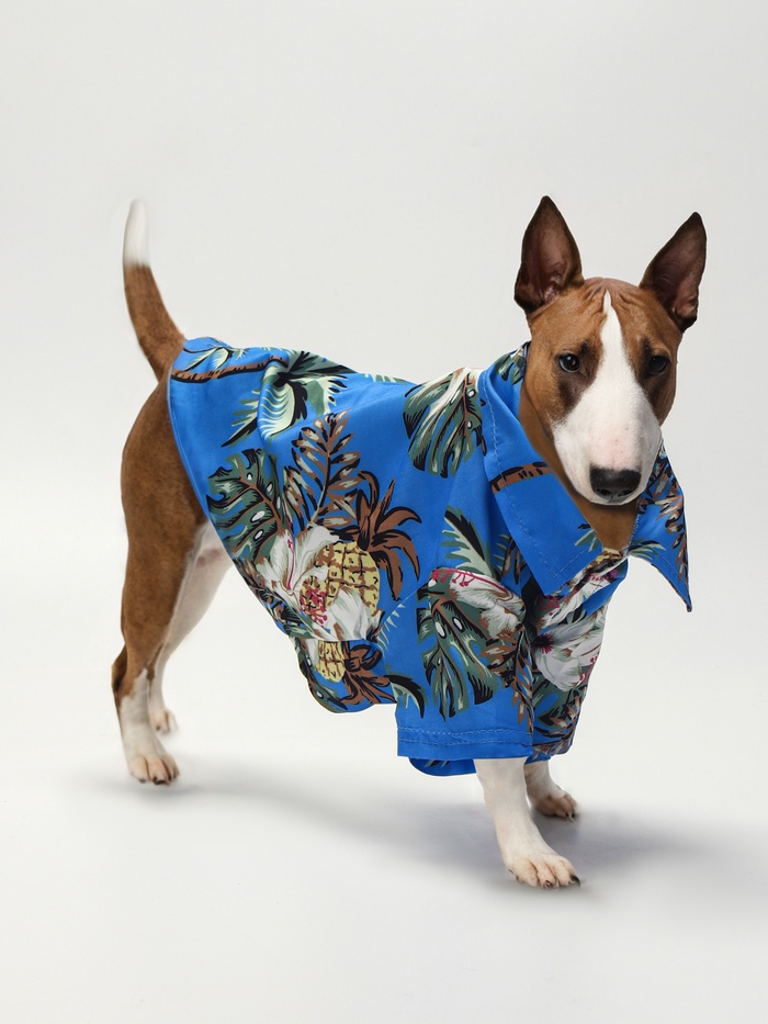 Рубашка для собак «Тропики», размер L, ДС 28, ОГ 36, ОШ 26 см, голубая