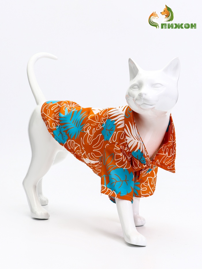 Рубашка для яркого настроения — лёгкая, свободная и заметная в толпе. Рубашка «Тропики» выполнена в сочном оранжевом цвете и подходит животным как мелких, так и средних пород. Рассчитана на обхват груди 35 см, длину спинки 25 см и обхват шеи 23 см.