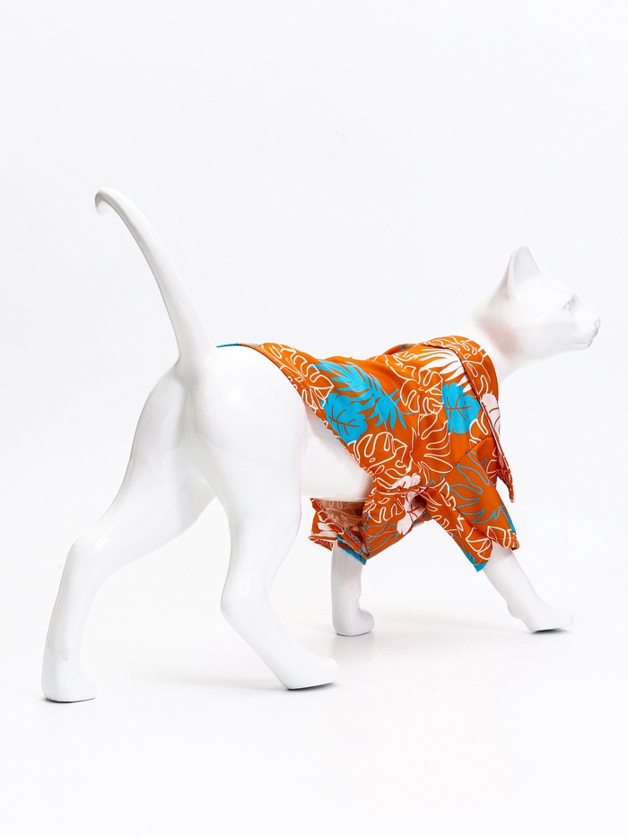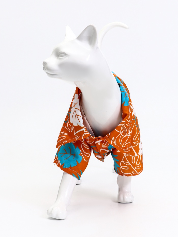 Рубашка для собак «Тропики», размер XS, ДС 20. ОГ 28, ОШ 19 см, оранжевая