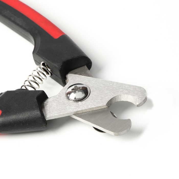 Когтерез боковой малый, с закругленными резиновыми ручками, отверстие 8 мм, чёрный, красный