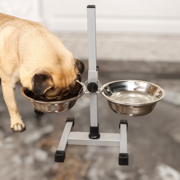 Подставка с мисками, 2×700 мл, высота 40 см, разборная с верхним фиксатором, хром