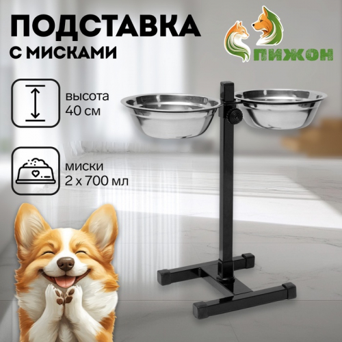 Качественные, практичные и функциональные миски для собак размещены на регулируемой подставке, которая будет «расти» вместе с вашими малышами.