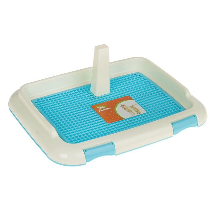 Туалет для собак, 46.5×35.5×5.5 см, со съёмным бортом, решёткой и столбиком, пластик, голубой