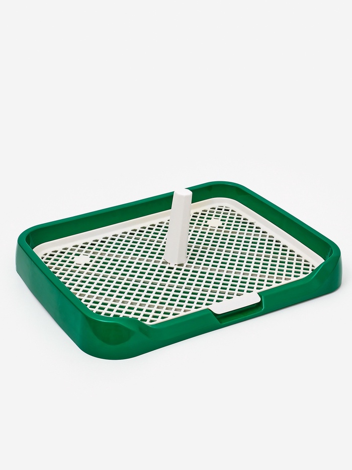 Туалет для собак, 46.5×36×5.5 см, со съёмной решеткой и столбиком, зелёный