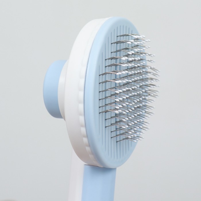 Пуходёрка пластиковая с функцией самоочистки, 7,7 х 19,1 см, голубая