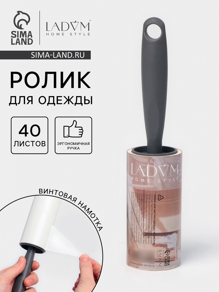 Ролик для одежды LaDо́m, 40 листов, эргономичная ручка, винтовая намотка