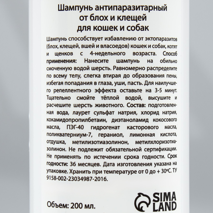 Шампунь "МОЙ ВЫБОР"антипаразитарный от блох и клещей, для кошек и собак, 200 мл