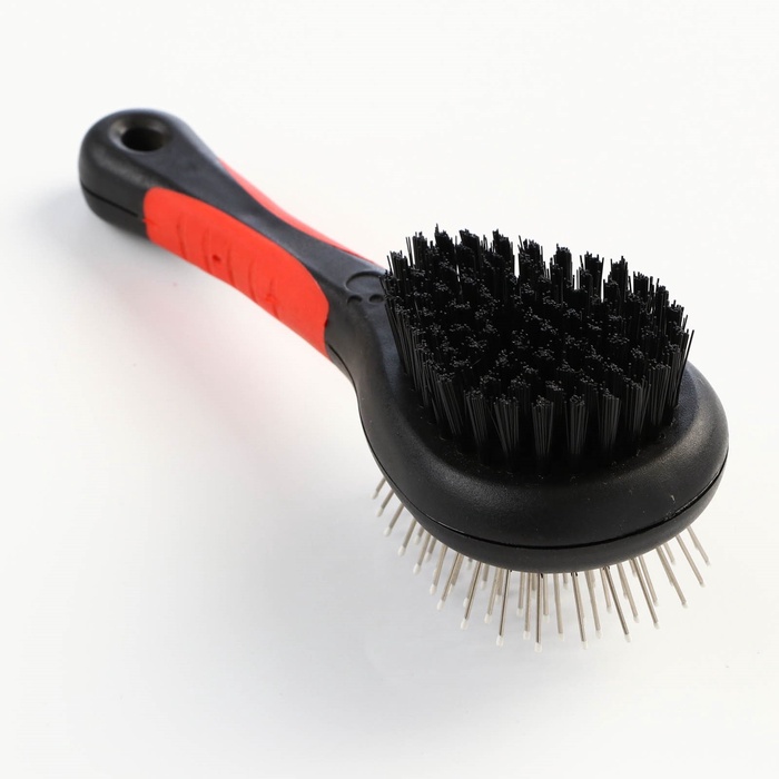 Щётка-расчёска двухсторонняя, 17.5×6.5 см, нескользящая ручка, чёрная, красная