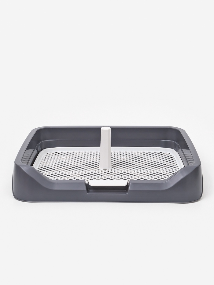 Туалет для собак, 48×39×8.5 см, с бортами, съёмной решеткой и столбиком, серый