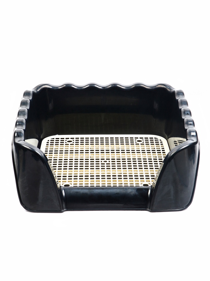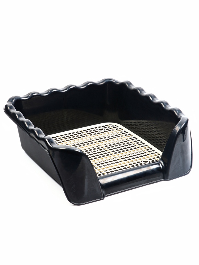 УЦЕНКА Туалет для собак с высокими бортами и съемной сеткой 43×43×15 см, чёрный